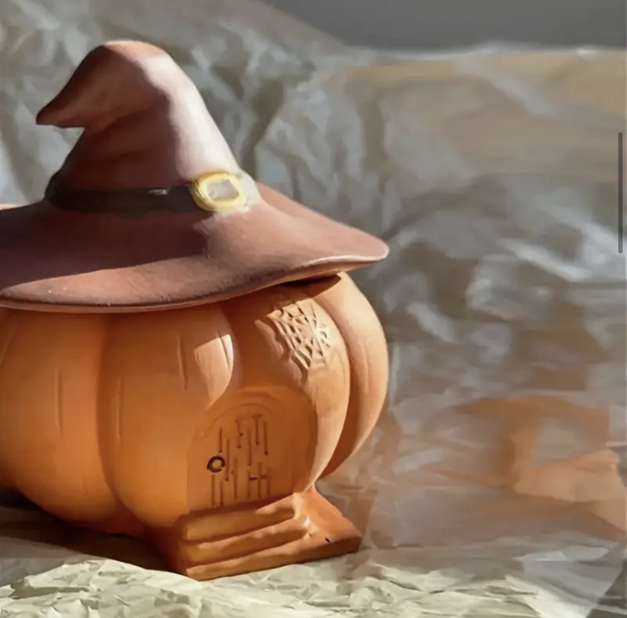 Şapkalı Balkabağı beton tabakta dekoratif kokulu mum